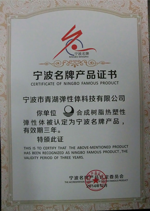 2016年2月26日,羊年春節(jié)剛剛結(jié)束,青湖雙喜臨門。由寧波名牌產(chǎn)品認(rèn)定委員會(huì)評選的“2015年寧波名牌”正式出爐,“青湖”牌合成樹脂熱塑性彈性體位列其中。同時(shí),公司也收到了寧波市計(jì)量測試學(xué)會(huì)頒發(fā)的“計(jì)量檢測能力確認(rèn)合格證書”,市計(jì)量測試學(xué)會(huì)對公司在產(chǎn)品質(zhì)量、經(jīng)營管理、節(jié)能降耗等方面的計(jì)量檢測能力給予了肯定。